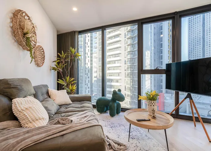 The 40 m² Designer Apt Southbank, Close To Crown And Mcec-Sh17 Melbourne is located a mere 1.8 km from Flinders Street train station and nearly a 5-minute walk from the urban mall "Clarendon Centre". Wi-Fi is provided for both business and leisure activities.